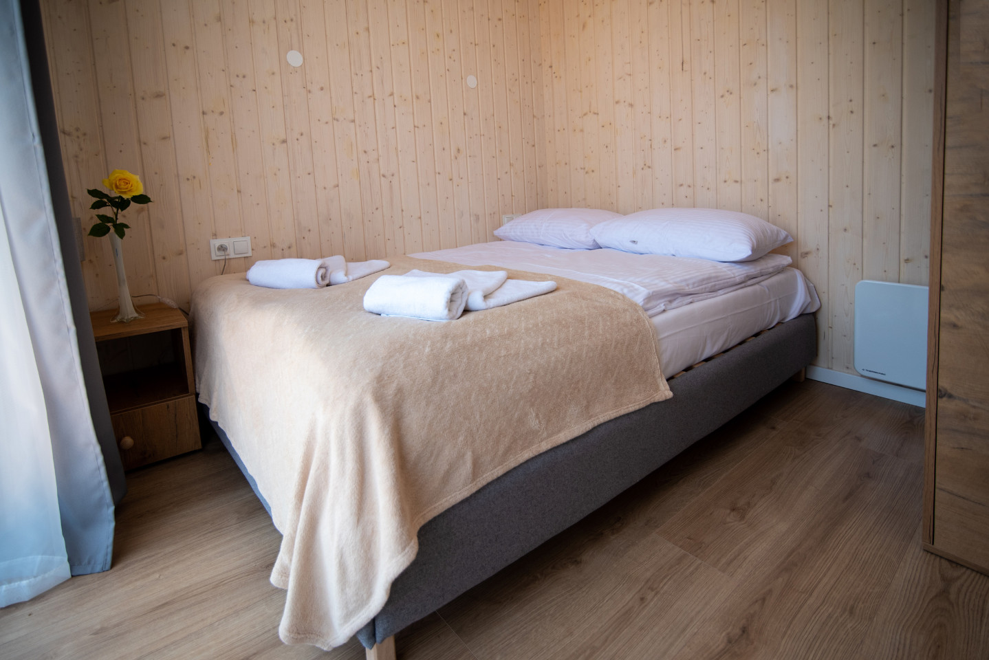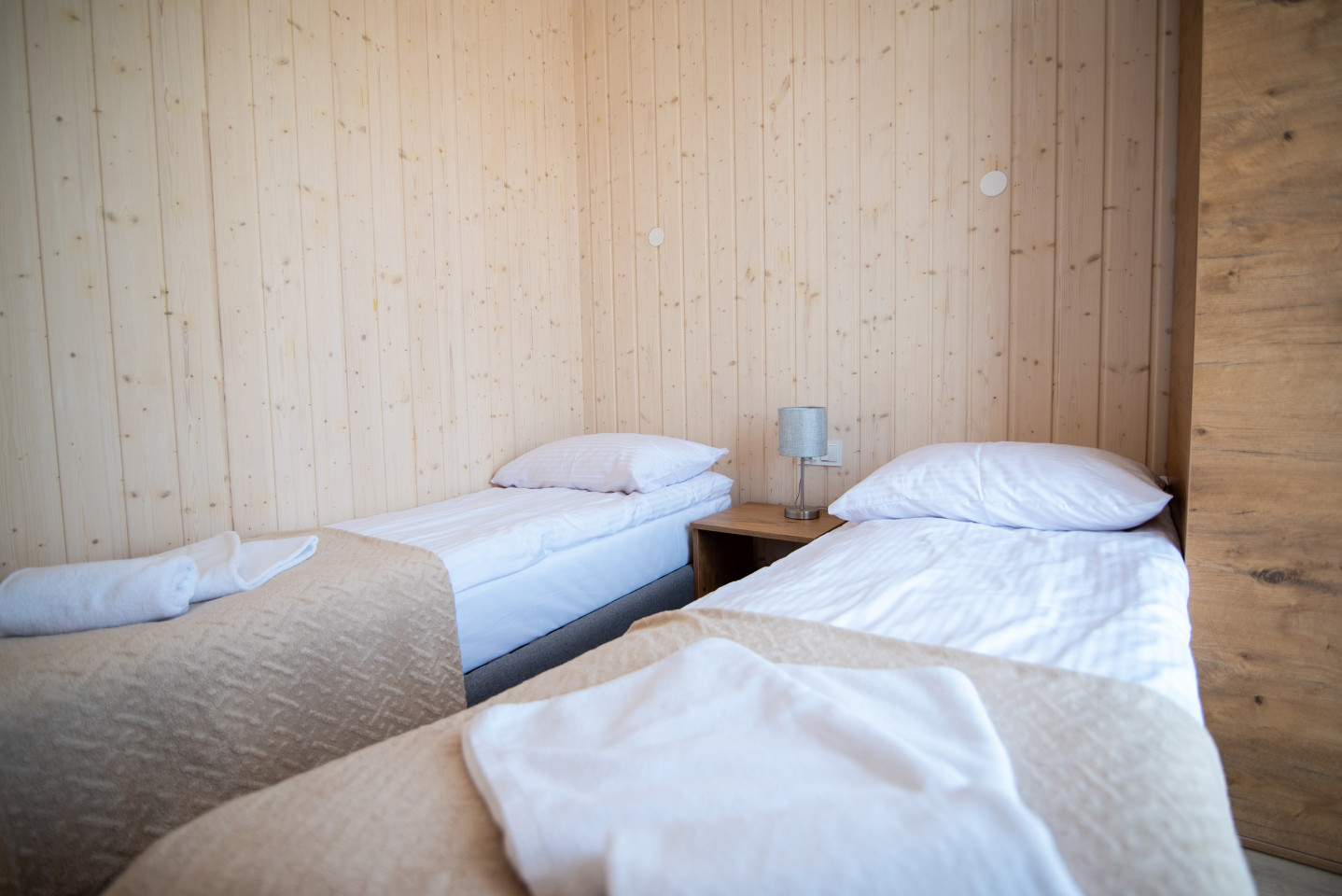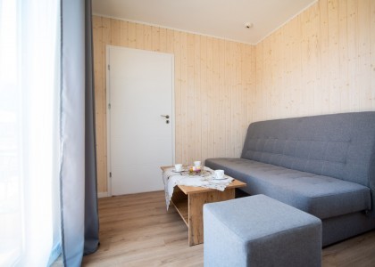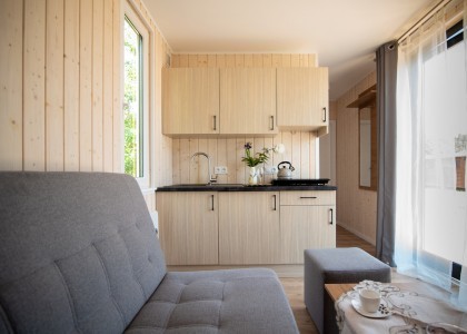 Dysponujemy dziewięcioma domkami letniskowymi SOL o wysokim standardzie, mogące pomieścić do 5 osób. Trzy domki przystosowane są dla osób niepełnosprawnych. Osada domków znajduje się w bezpośredniej bliskości jeziora i lasu oraz Gościńca pod Dębem.