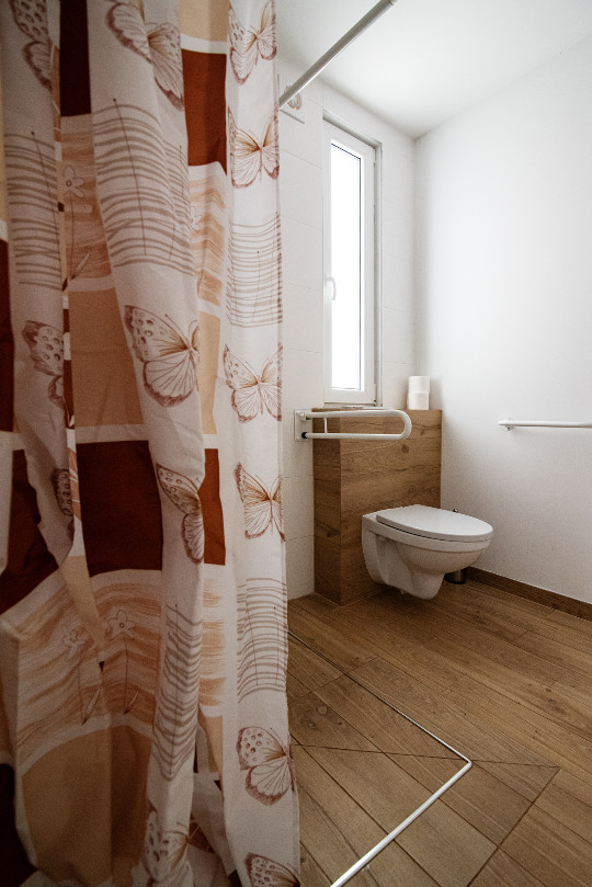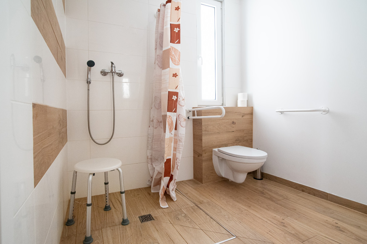 - łazienka z prysznicem, przystosowana dla osób niepełnosprawnych