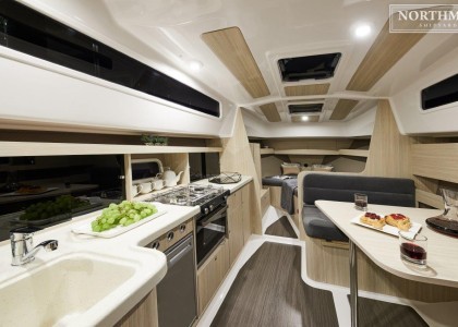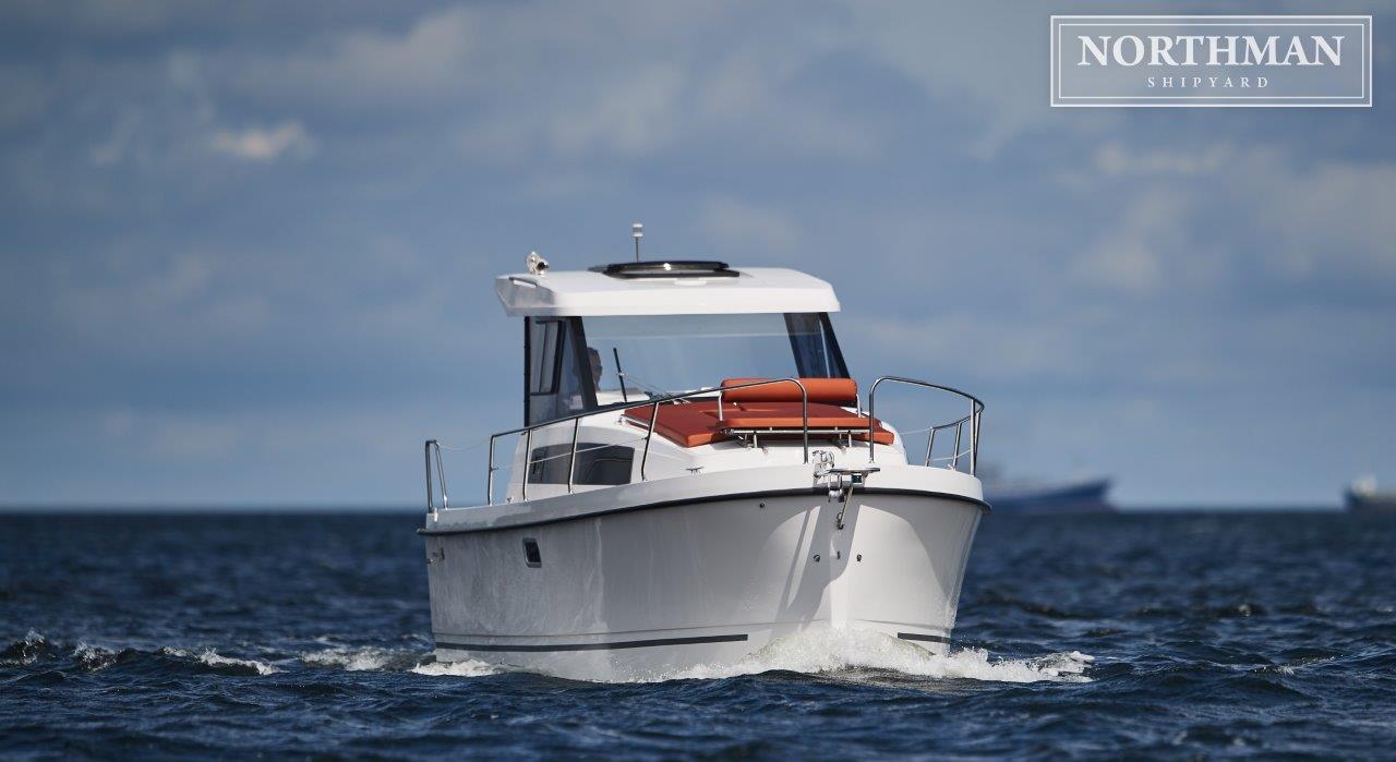 Łódka Nexus Revo 870 jest jednostką mającą na celu zaspokojenie oczekiwań najbardziej wymagających armatorów w sektorze jachtów wypornościowych i półślizgowych. Szerokie półpokłady, obszerny kokpit, łatwo dostępne platformy kąpielowe na zewnątrz oraz przemyślane detale ergonomicznego wnętrza, wykończone przy użyciu najwyższej jakości materiałów – to wszystko gwarantuje wygodę nawet w najdłuższych rejsach. Maksymalna moc silnika 10 KM umożliwa pływanie bez patentu.