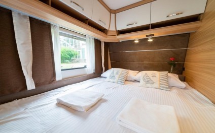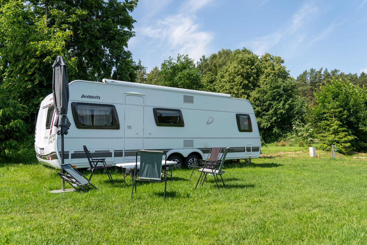 Klimatyzowana i ogrzewana przyczepa kempingowa Dethleffs w Velo Camp znajduje się w odległości 50 metrów od jeziora Dadaj i obejmuje część wypoczynkową oraz aneks kuchenny z lodówką i kuchenką 3 palnikową. Do dyspozycji Gości Velo Camp jest łazienka z zestawem prysznicowym i toaletą. Przyczepa wyposażona jest w telewizor z płaskim ekranem i dostępem do kanałów TV.