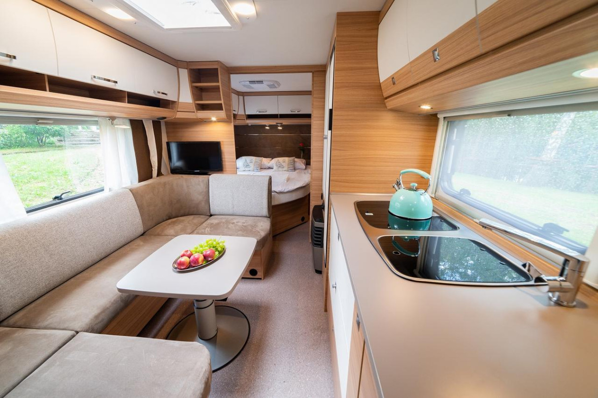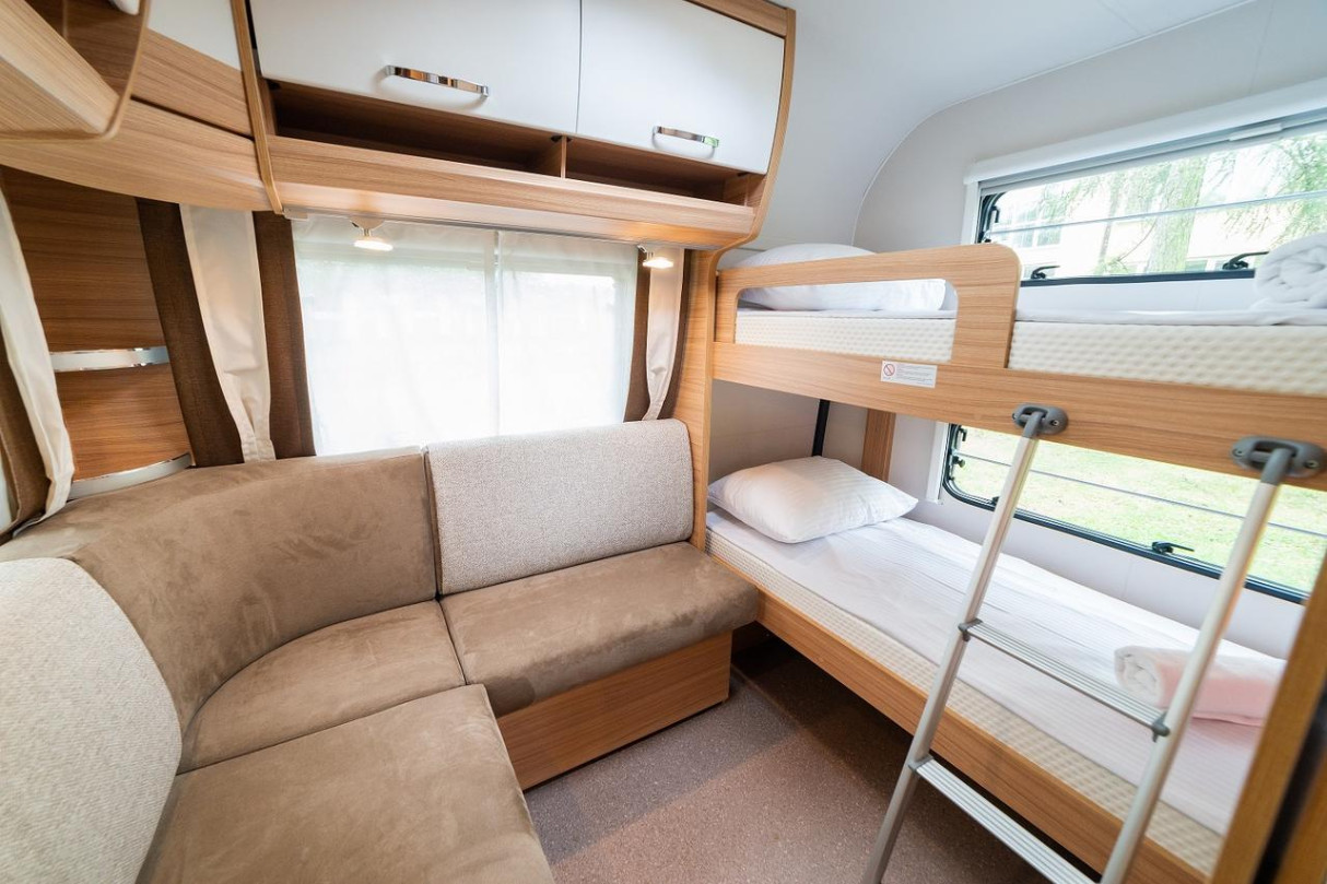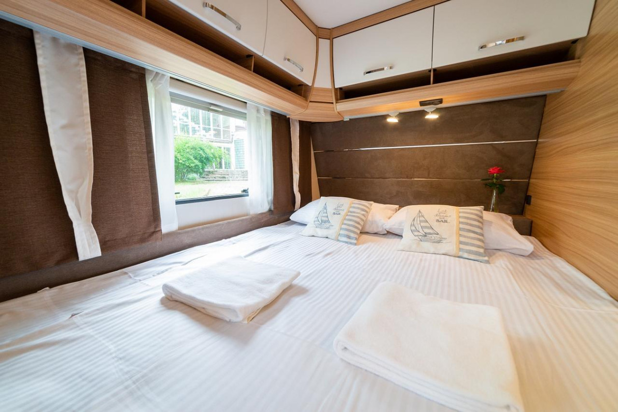Klimatyzowana i ogrzewana przyczepa kempingowa Dethleffs w Velo Camp znajduje się w odległości 50 metrów od jeziora Dadaj i obejmuje część wypoczynkową oraz aneks kuchenny z lodówką i kuchenką 3 palnikową. Do dyspozycji Gości Velo Camp jest łazienka z zestawem prysznicowym i toaletą. Przyczepa wyposażona jest w telewizor z płaskim ekranem i dostępem do kanałów TV.